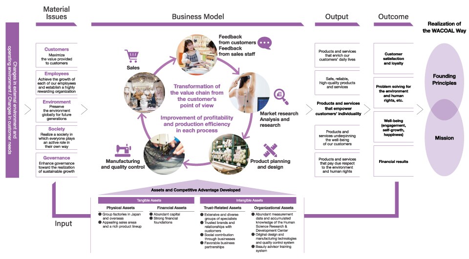 The Group will maximize and optimize the various assets that it has developed—including physical, financial, trust-related, and organizational assets—and advance medium- to long-term growth strategies to resolve material issues and enhance enterprise value even further. Through rigorous, customer-focused business model reform, execution of growth strategy, as well as the evolution of our value creation process, we will continue bringing products and services that enrich society to the market.